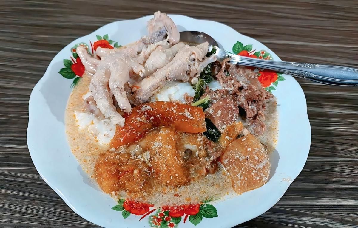 Di dalam satu porsi, kamu akan mendapatkan nasi panas yang disajikan dengan ayam panggang lembut, telur, serta kuah opor yang gurih dan manis.